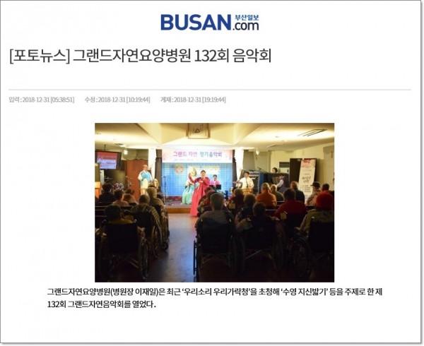 [부산일보] 그랜드자연요양병원 132회 음악회 페이지 정보 작성자 최고관리자 작성일19-01-09 17:42 조회1,699회 댓글0건 이전글 다음글 목록 본문 [ 출처 : 부산일보 2018. 12.31 제29면 ] 댓글목록 등록된 댓글이 없습니다. 이전글 다음글 목록