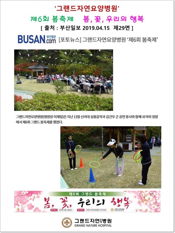 [부산일보] 그랜드자연요양병원 '제6회 그랜드 봄축제' 페이지 정보 작성자 최고관리자 작성일19-04-22 09:45 조회1,761회 댓글0건 이전글 다음글 목록 본문 [ 출처 : 부산일보 2019. 04.15 제29면 ] 댓글목록 등록된 댓글이 없습니다. 이전글 다음글 목록