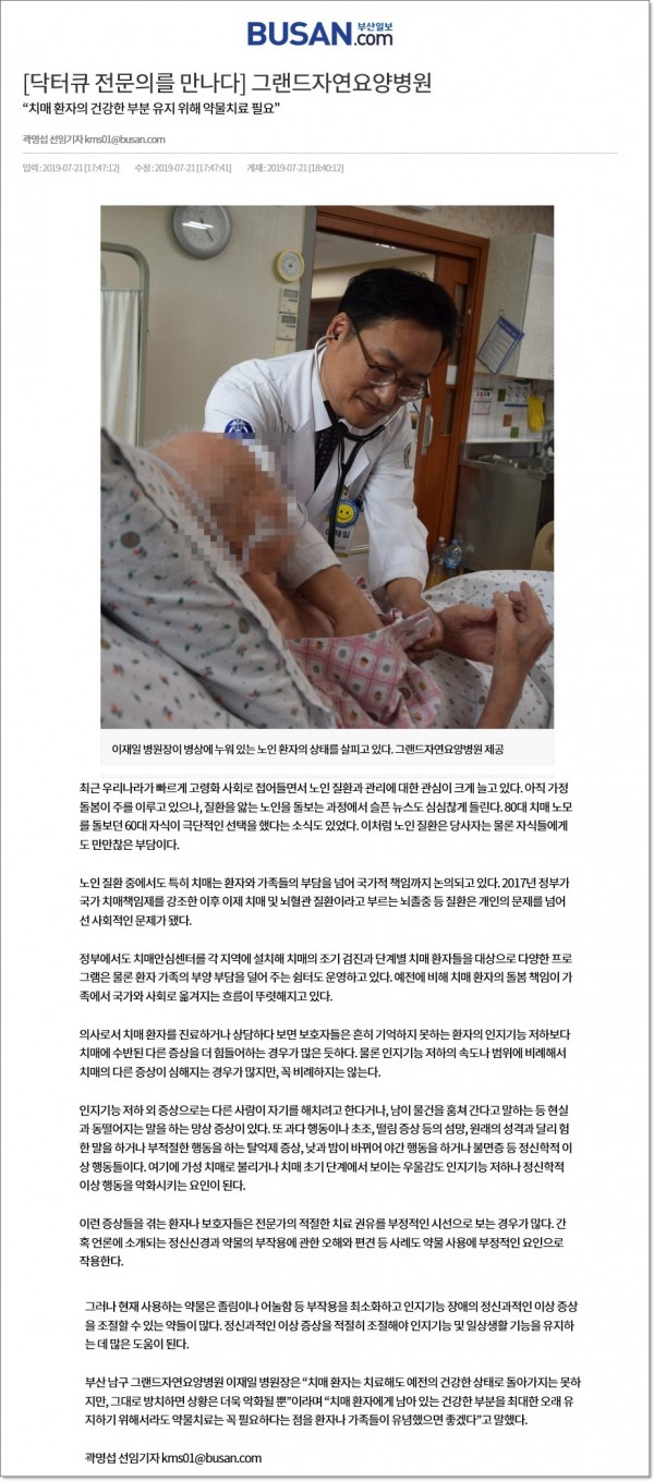 [부산일보] 닥터큐 전문의를 만나다 - 그랜드자연요양병원 이재일 병원장 페이지 정보 작성자 최고관리자 작성일19-08-13 11:27 조회1,983회 댓글0건 이전글 다음글 목록 본문 [ 출처 : 부산일보 2019. 07.22 제23면 곽명섭 선임기자 ] 댓글목록 등록된 댓글이 없습니다. 이전글 다음글 목록