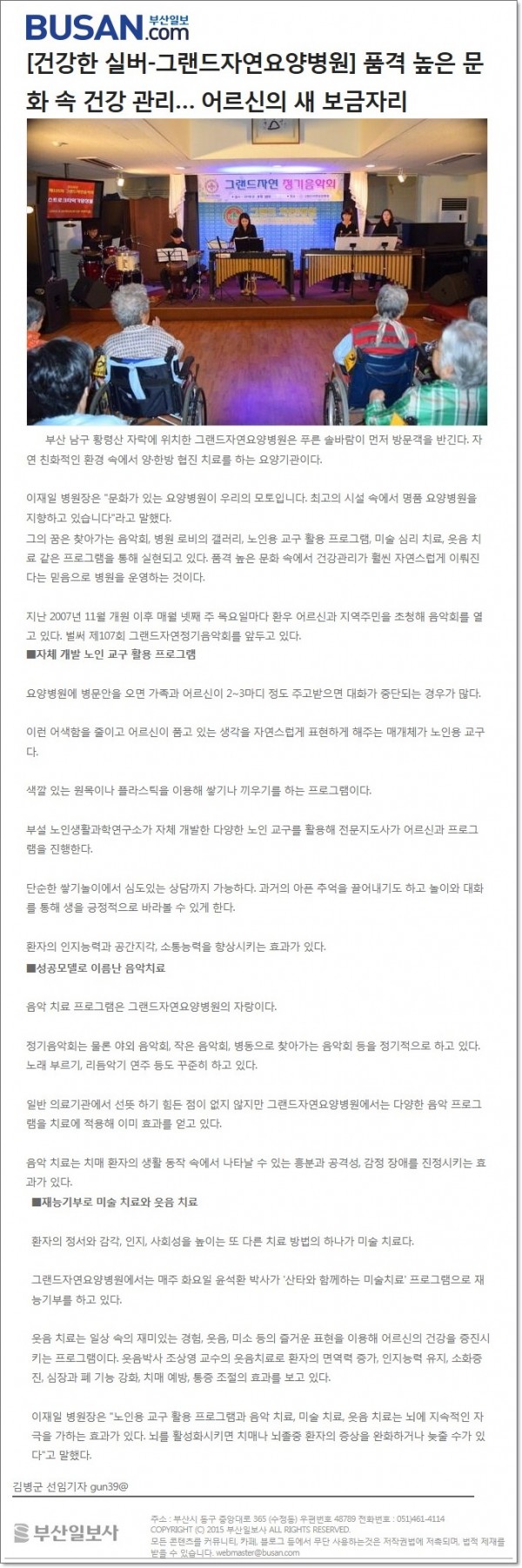 [부산일보] 건강한 실버 - 품격 높은 문화 속 건강 관리 페이지 정보 작성자 최고관리자 작성일16-12-09 15:27 조회1,980회 댓글0건 이전글 다음글 목록 본문 [출처 : 부산일보 2016.11.24 제29면 김병군 선임기자] 댓글목록 등록된 댓글이 없습니다. 이전글 다음글 목록