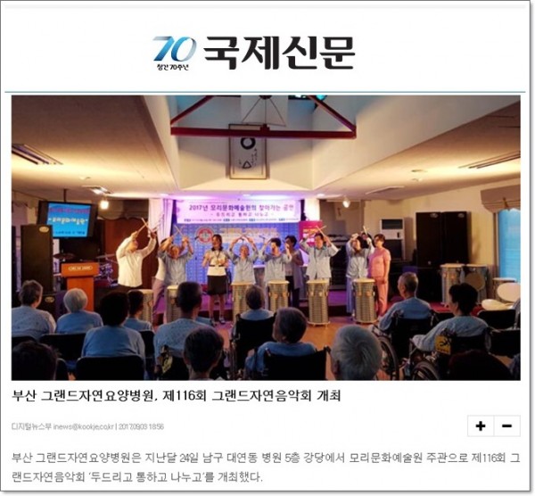 [국제신문] 그랜드자연요양병원 '어르신과 함께 공연' 페이지 정보 작성자 최고관리자 작성일17-09-07 15:51 조회1,601회 댓글0건 이전글 다음글 목록 본문 [출처 : 국제신문 2017.9.4 제27면 사람&이야기] 댓글목록 등록된 댓글이 없습니다. 이전글 다음글 목록