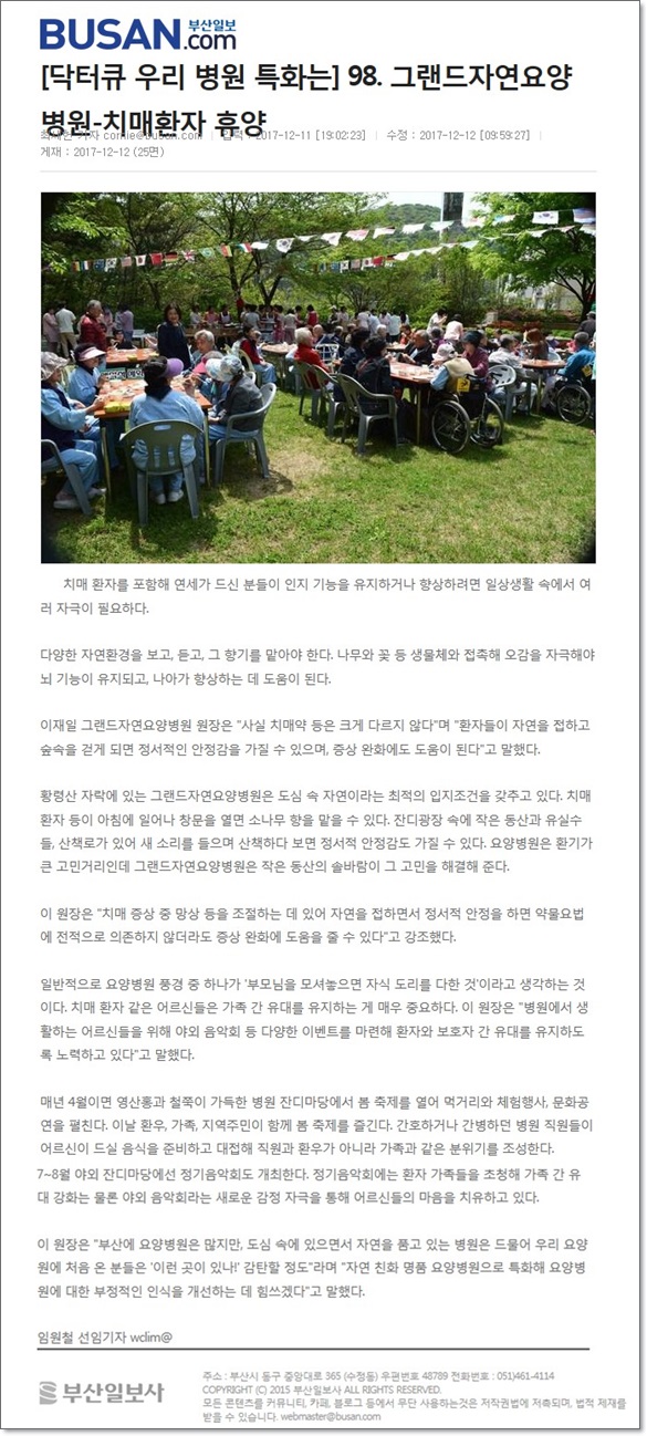 [부산일보] 자연 속 명품병원, 그랜드자연요양병원 페이지 정보 작성자 최고관리자 작성일17-12-18 14:25 조회1,679회 댓글0건 이전글 다음글 목록 본문 [출처 : 부산일보 2017. 12. 12 제25면 임원철 선임기자] 댓글목록 등록된 댓글이 없습니다. 이전글 다음글 목록