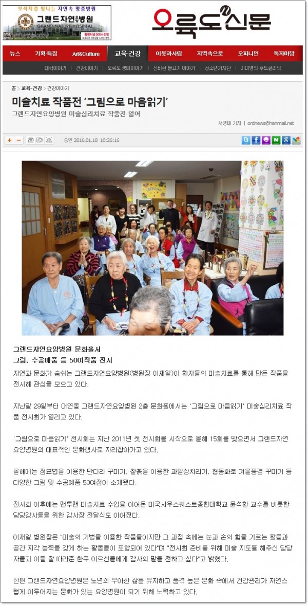 [오륙도 신문] 미술치료 작품전 '그림으로 마음읽기' 페이지 정보 작성자 최고관리자 작성일16-01-25 16:06 조회2,032회 댓글0건 이전글 다음글 목록 본문 [출처 : 오륙도 신문 2016.1.7 서영태 기자] 댓글목록 등록된 댓글이 없습니다. 이전글 다음글 목록