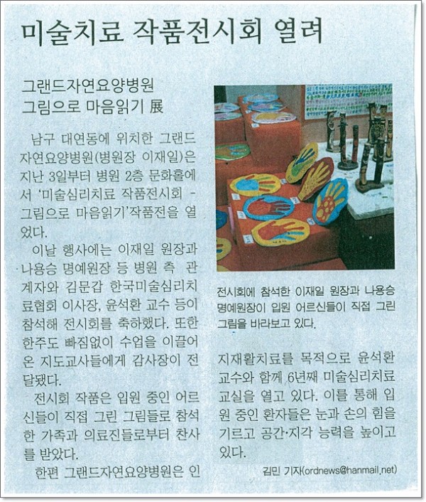 [오륙도신문] 그랜드자연요양병원 미술치료 작품전시회 열려. 페이지 정보 작성자 최고관리자 작성일15-03-05 11:42 조회2,354회 댓글0건 이전글 다음글 목록 본문 [출처 : 오륙도 신문, 제7면 / 2015.2.16 김민 기자] 댓글목록 등록된 댓글이 없습니다. 이전글 다음글 목록