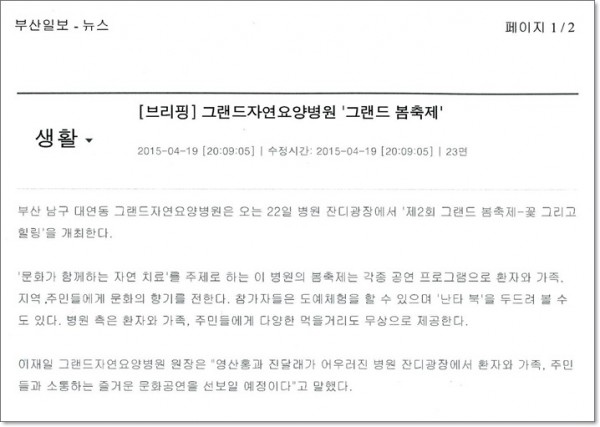 [부산일보] 그랜드자연요양병원 '그랜드 봄축제' 페이지 정보 작성자 최고관리자 작성일15-05-13 09:43 조회2,029회 댓글0건 이전글 다음글 목록 본문 [ 출처 : 부산일보 2015.04.19 제23면 ] 댓글목록 등록된 댓글이 없습니다. 이전글 다음글 목록