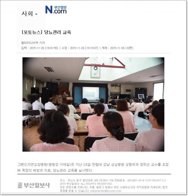 [부산일보] 강남 성심병원 정희선교수 초빙 욕창과 당뇨 발관리 교육 열어. 페이지 정보 작성자 최고관리자 작성일15-12-24 11:14 조회2,368회 댓글0건 이전글 다음글 목록 본문 [출처 : 부산일보 2015.11.26 제33면] 댓글목록 등록된 댓글이 없습니다. 이전글 다음글 목록