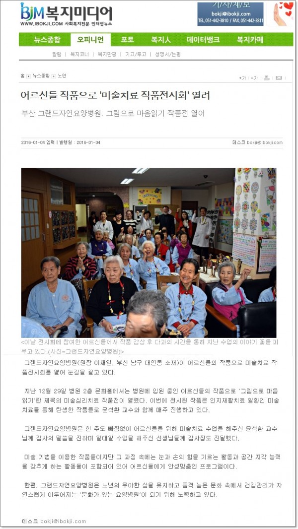 [복지미디어] 어르신들 작품으로 "미술치료 작품전시회"열려 페이지 정보 작성자 최고관리자 작성일16-01-25 16:03 조회1,972회 댓글0건 이전글 다음글 목록 본문 [ 출처 : 복지미디어 2016.1.4 ] 댓글목록 등록된 댓글이 없습니다. 이전글 다음글 목록