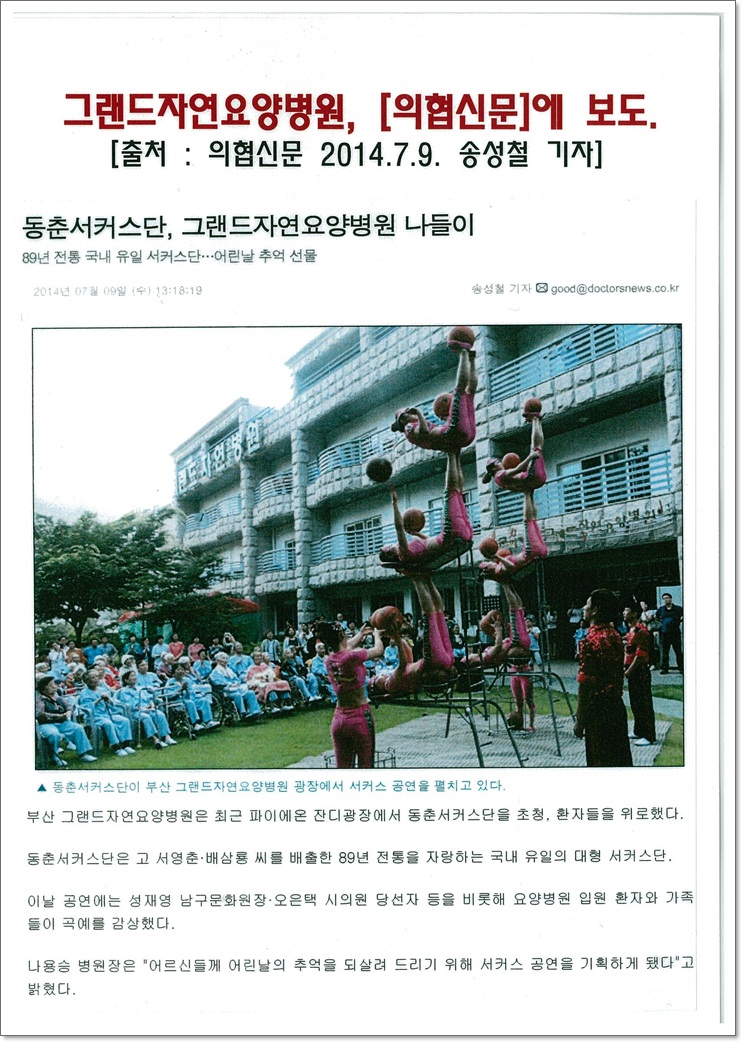 [의협신문] 동춘서커스단, 그랜드자연요양병원 나들이 페이지 정보 작성자 그랜드자연병원 작성일14-07-11 10:41 조회2,096회 댓글0건 이전글 다음글 목록 본문 [출처 : 의협신문 2014.7.9 /송성철 기자] 댓글목록 등록된 댓글이 없습니다. 이전글 다음글 목록