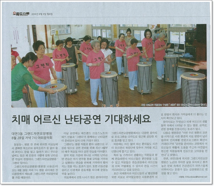[오륙도 신문] 어르신들 난타 공연. 페이지 정보 작성자 그랜드자연병원 작성일14-09-05 16:37 조회1,927회 댓글0건 이전글 다음글 목록 본문 [출처 : 오륙도 신문 제5면 / 2014.8.4 서영태 기자] 댓글목록 등록된 댓글이 없습니다. 이전글 다음글 목록