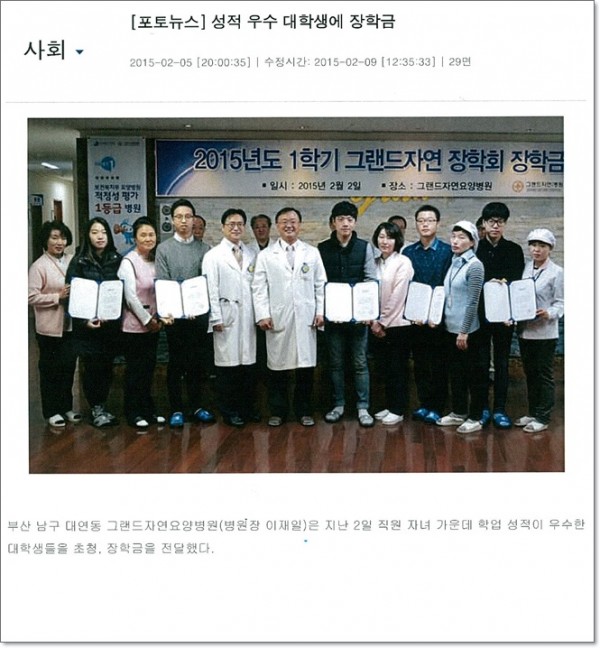 [부산일보] 그랜드자연요양병원 직원 자녀에 장학금 페이지 정보 작성자 최고관리자 작성일15-03-05 10:32 조회2,014회 댓글0건 이전글 다음글 목록 본문 [출처 : 부산일보 2015.02.05 제29면] 댓글목록 등록된 댓글이 없습니다. 이전글 다음글 목록