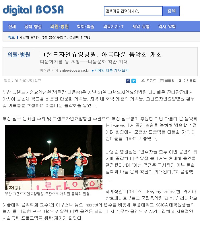 [의학신문]그랜드자연요양병원, 아름다운 음악회 개최. 페이지 정보 작성자 그랜드자연병원 작성일13-08-06 12:25 조회2,159회 댓글0건 이전글 다음글 목록 본문 -[출처:의학신문 2013.7.25./이상만 기자] 댓글목록 등록된 댓글이 없습니다. 이전글 다음글 목록