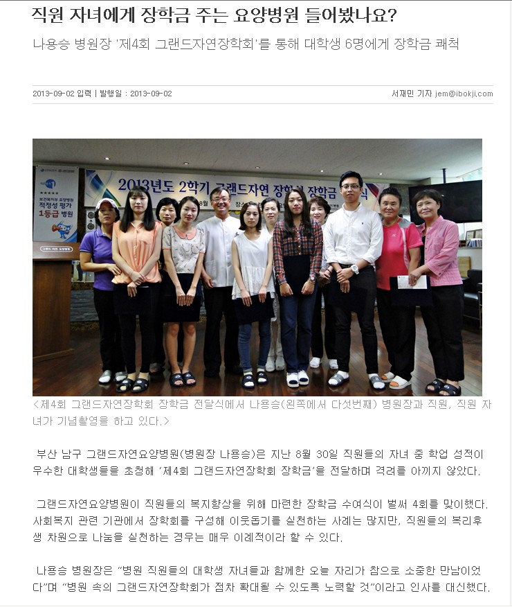 [복지미디어] 제4회 그랜드자연 장학회 장학금 수여식 페이지 정보 작성자 그랜드자연병원 작성일13-09-09 15:52 조회2,297회 댓글0건 이전글 다음글 목록 본문 [출처 : 복지미디어 2013.9.2./ 서재민 기자] 댓글목록 등록된 댓글이 없습니다. 이전글 다음글 목록