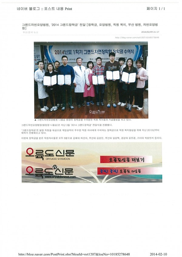 [오륙도신문] 그랜드자연요양병원, '2014 그랜드장학금' 전달 페이지 정보 작성자 그랜드자연병원 작성일14-02-10 11:43 조회2,170회 댓글0건 이전글 다음글 목록 본문 [출처 : 오륙도신문 2014.2.9.] 댓글목록 등록된 댓글이 없습니다. 이전글 다음글 목록
