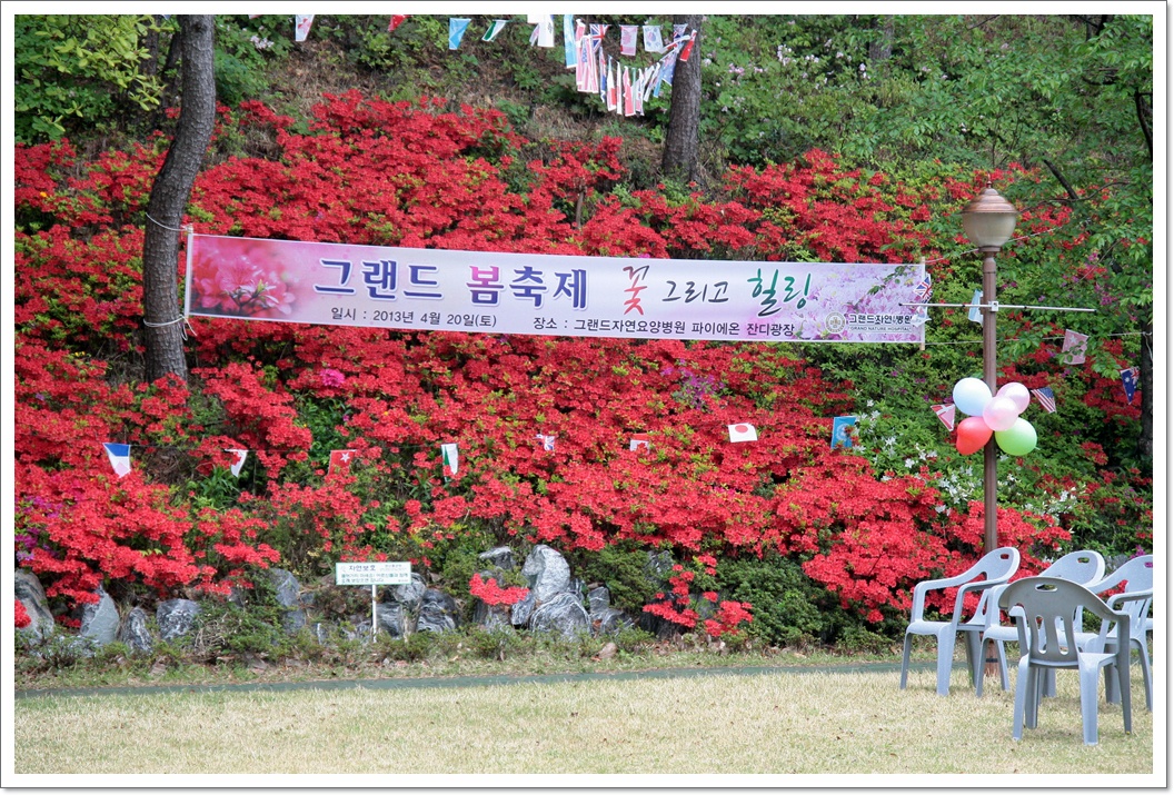 그랜드자연요양병원은 봄을 맞아 지난 4월 20일 '문화가 함께 하는 자연 치료 - 꽃 그리고 힐링'을 열었다. 이번 공연은 그랜드자연요양병원 문화 예술 프로그램의 하나로 진행되었는데 공연에 초청된 라메르 오케스트라, 온누리 오페라단, 한소리 풍물단, 예그리나 공연단 등은 어르신들께 문화의 향기를 전파하며 틀에 박힌 공연이 아닌 어르신 관객들과 소통하면서 하나 되는 시간을 가졌다. 영산홍과 진달래 그리고 야생화가 어우러진 그랜드자연요양병원의 파이에온 잔디광장에서 열린 이번 공연은 그랜드자연요양병원의 환우와 환우 가족을 위안하고 지역 주민들과 함께 어울릴 수 있도록 다양한 먹거리 또한 무상으로 제공되었다. 그랜드자연요양병원은 노년의 우아한 삶을 유지하고 품격 높은 문화속에서 건강관리가 자연스럽게 이루어지는 문화가 있는 요양병원이 되기 위해 노력하고 있다. [출처 : 의협신문 2013.5.6./송성철 기자]