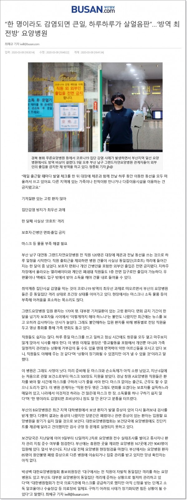 [부산일보]'방역 최전방' 요양병원 페이지 정보 작성자 최고관리자 작성일20-03-10 14:20 조회2,408회 댓글0건 이전글 다음글 목록 본문 [ 출처 : 부산일보 2020. 03.10 제23183호 제4면 ] 댓글목록 등록된 댓글이 없습니다. 이전글 다음글 목록