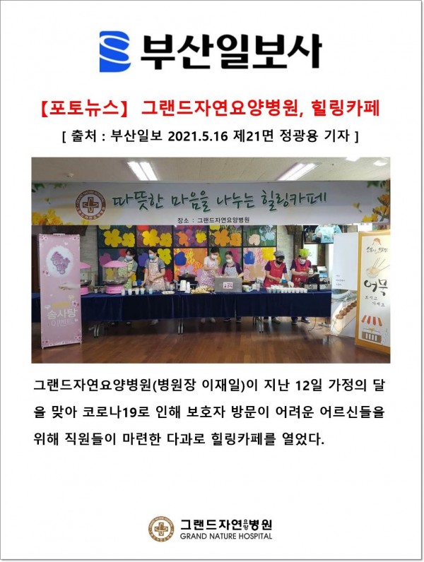 [부산일보] 그랜드자연요양병원, 힐링카페 페이지 정보 작성자 최고관리자 작성일21-05-28 15:10 조회2,222회 댓글0건 이전글 다음글 목록 본문 [ 출처 : 부산일보 2021. 5.16 제21면 정광용기자 ] 댓글목록 등록된 댓글이 없습니다. 이전글 다음글 목록