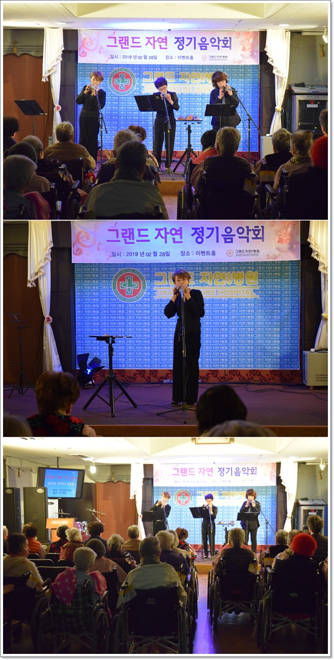 그랜드자연요양병원은 2월 28일 "KOTTA 오카리나 앙상블"의 공연으로 제134회 그랜드자연음악회를 열었다. KOTTA 오카리나 앙상블은 '한국 오카리나 지도자 교육협회' 임원들로 구성된 오카리나 앙상블로 클래식 음악을 비롯하여 어르신들이 좋아하시는 옛가요까지 다양한 쟝르의 음악을 오카리나 악기로 표현하였다.