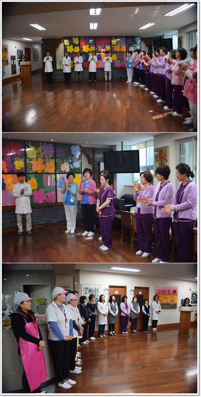 그랜드자연요양병원은 4월 1일 1층 로비에서 전직원들이 참석한 가운데 그랜드자연 월례회를 가졌다. 이재일 병원장은 어르신들의 건강 관리에 만전을 기하자는 말씀과 함께 수고하는 직원들을 격려하였다. 이어서 신입직원들의 인사가 이어졌고 봄내음이 짙어가는 4월을 준비하는 마음으로 "그랜드 그랜드 힘!"의 구호와 함께 4월 월례회를 마쳤다.