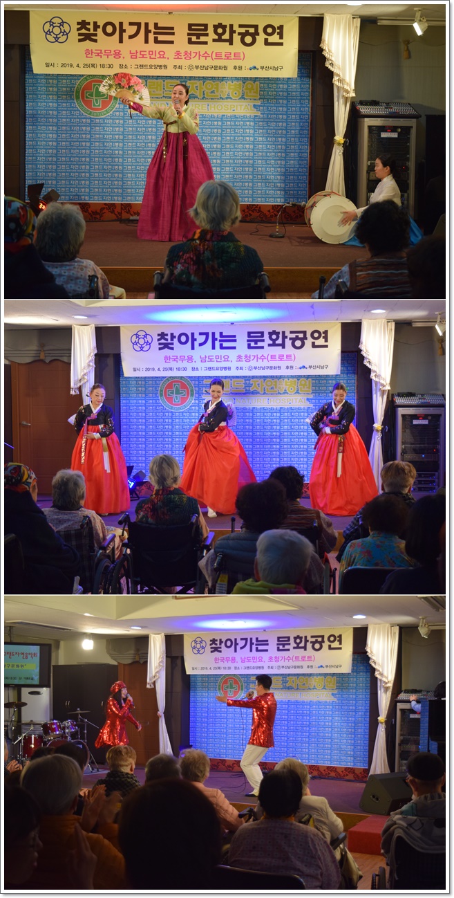 제136회 그랜드자연음악회 - 남구문화원 페이지 정보 작성자 최고관리자 작성일19-05-08 17:36 조회1,665회 댓글0건 이전글 다음글 목록 본문 그랜드자연요양병원은 4월 25일 <남구문화원>의 공연으로 제136회 그랜드자연음악회를 열었다. 이날 공연은 남도민요로 무대를 열어 한국 무용, 옛가요 등으로 어르신들과 함께 즐거운 무대를 꾸몄다. 댓글목록 등록된 댓글이 없습니다. 이전글 다음글 목록