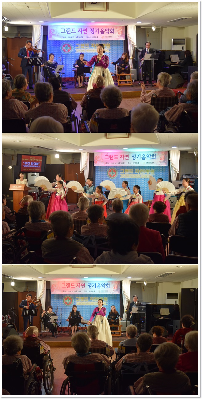그랜드자연요양병원은 "퓨전 앙상블"의 공연으로 제130회 그랜드자연음악회를 열었다. "퓨전 앙상블"은 어르신들이 좋아하시는 민요를 바이올린, 오보에, 해금 등의 무대로 꾸몄으며, <명랑국악단>의 특별출연으로 어르신들께 큰 웃음을 선물하였다. <명랑 국악단>은 미래의 한국 전통음악을 이끌어야 하는 우리 어린 아이들이 밝고 생기 넘치며 긍정적 사고로 대중들에게 친근하게 전통음악을 전하기를 바라는 소망을 담은 어린이 국악 연주 단체이다.