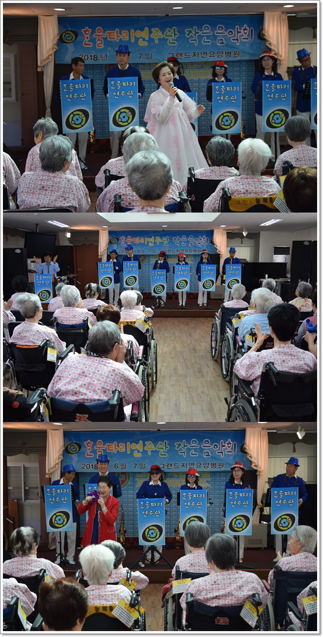 6월의 작은 음악회 - 한울타리 연주단 공연 페이지 정보 작성자 최고관리자 작성일18-07-06 11:51 조회1,654회 댓글0건 이전글 다음글 목록 본문 지난 6월 7일 한울타리 연주단의 공연으로 작은 음악회가 그랜드자연요양병원 5층 이벤트홀에서 열렸다.한울타리 연주단은 어르신들이 즐겨 들으시는 흥겨운 옛가요와 색소폰의 합주로 어르신들과 함께 할 수 있는 흥겨운 시간을 마련했다. 댓글목록 등록된 댓글이 없습니다. 이전글 다음글 목록