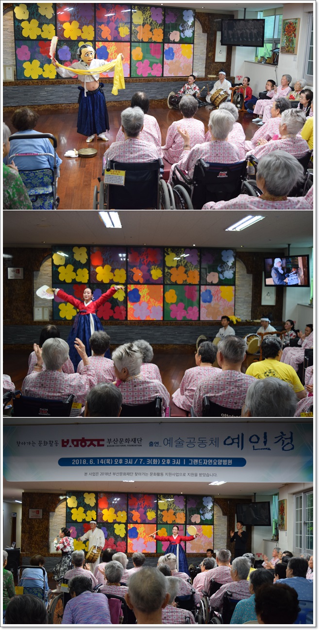 7월의 작은음악회 - 전통예술 "예인청" 공연 페이지 정보 작성자 최고관리자 작성일18-07-13 10:27 조회1,805회 댓글0건 이전글 다음글 목록 본문 전통예술 "예인청"의 공연이 7월 3일 그랜드자연요양병원 1층 로비에서 열렸다.어르신들이 좋아하시는 부채춤, 북춤을 비롯하여 각설이 타령 등으로 즐거운 시간을 마련했다. 댓글목록 등록된 댓글이 없습니다. 이전글 다음글 목록
