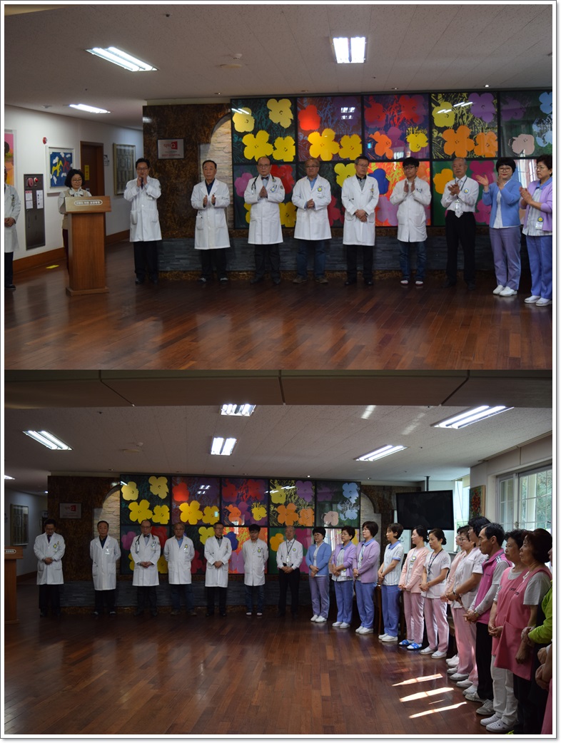 그랜드자연요양병원은 4월 2일 1층 로비에서 전직원들이 참석한 가운데 그랜드자연 월례회를 가졌다. 이재일 병원장은 어르신들의 건강 관리에 만전을 기하자는 말씀과 함께 인증을 앞두고 수고하는 직원들을 격려하였다. 이어서 신입직원들의 인사가 이어졌고 봄내음이 짙어가는 4월을 준비하는 마음으로 "그랜드 그랜드 힘!"의 구호와 함께 4월 월례회를 마쳤다.