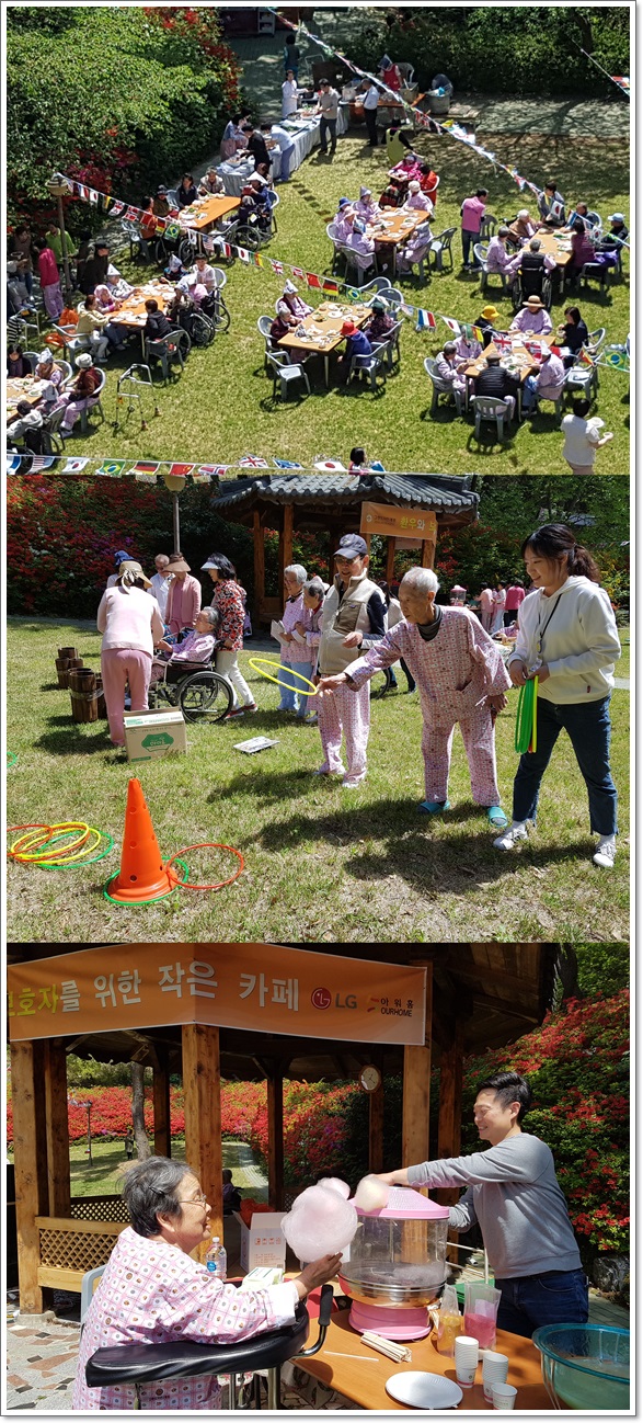 이번 축제에는 LG 아워홈 쉐프들을 초청해 어르신과 보호자, 직원들에게 맛있는 음식과 음료 등을 제공했다. 또한 영산홍이 활짝 핀 잔디광장에서 다채로운 게임도 즐겼다.