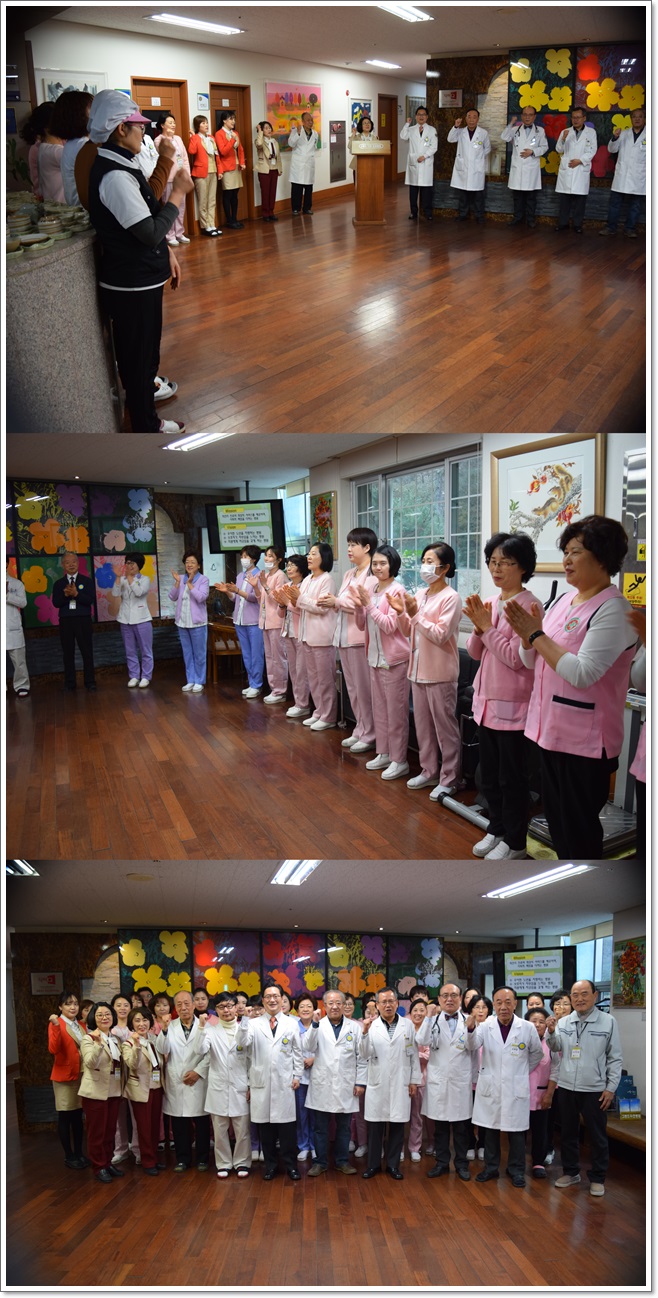 이재일 병원장의 2018년 무술년 개띠해를 맞아 새로운 시작으로 박차를 가하자는 새해 첫 인사 말씀과 이어 정은희 간호과장의 새해 첫 말씀, 신입 직원들의 인사, 1월에 생일을 맞이한 직원들의 축하 시간이 이어졌다.