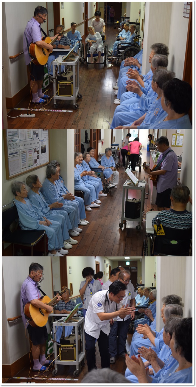 8월의 병동으로 찾아가는 작은 음악회 페이지 정보 작성자 최고관리자 작성일17-08-16 15:35 조회1,750회 댓글0건 이전글 다음글 목록 본문 그랜드자연요양병원에서는 거동이 힘든 어르신들을 위해 병동 및 재활센터로 찾아가서 여는 병동으로 찾아가는 작은 음악회를 열고 있다. 댓글목록 등록된 댓글이 없습니다. 이전글 다음글 목록