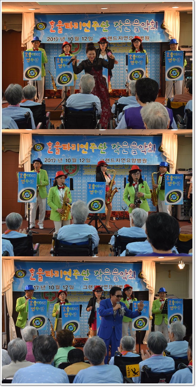 10월의 작은 음악회 - 한울타리 연주단 공연 페이지 정보 작성자 최고관리자 작성일17-11-23 10:55 조회1,820회 댓글0건 이전글 다음글 목록 본문 지난 10월 12일 그랜드자연 작은음악회가 한울타리 연주단의 공연으로 5층 이벤트홀에서 열렸다. 한울타리 연주단은 색소폰 합주, 옛가요 등 어르신들과 함께 흥겨운 시간을 보냈다. 댓글목록 등록된 댓글이 없습니다. 이전글 다음글 목록