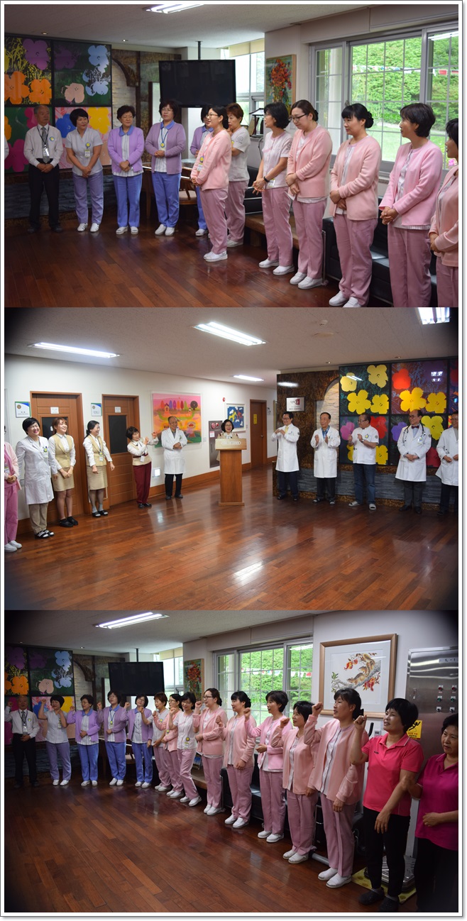 그랜드자연요양병원은 지난 5월 2일 1층 로비에서 전직원들이 참석한 가운데 그랜드자연 월례회를 가졌다. 이날 이재일 병원장은 가정의 달인 만큼 어르신들께 사랑의 마음과 표현을 듬뿍 하기를 강조 하였으며, 이어서 신입직원들의 인사가 이어졌고 5월에 생일을 맞이한 직원들을 축하하며 작은 정성으로 마련된 선물이 전달되었다. 푸르름이 가득한 5월을 준비하는 마음으로 "그랜드 그랜드 힘!"의 구호와 함께 5월 월례회를 마쳤다.