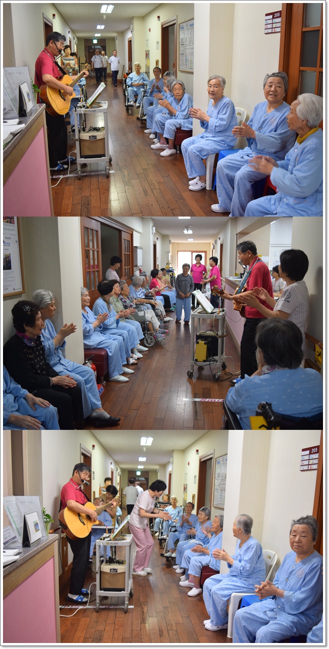 7월의 병동으로 찾아가는 작은 음악회 페이지 정보 작성자 최고관리자 작성일17-07-20 15:21 조회1,824회 댓글0건 이전글 다음글 목록 본문 그랜드자연요양병원에서는 거동이 힘든 어르신들을 위해 병동 및 재활센터로 찾아가서 여는 병동으로 찾아가는 작은 음악회를 열고 있다. 댓글목록 등록된 댓글이 없습니다. 이전글 다음글 목록