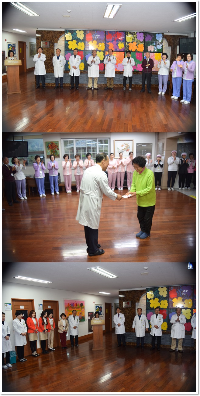 그랜드자연요양병원은 지난 2월 1일 1층 로비에서 전직원들이 참석한 가운데 그랜드자연 월례회를 가졌다. 이날 이재일 병원장은 환절기 어르신들 건강관리에 만전을 기하자고 강조 하였으며 이어서 신입직원들의 인사가 이어졌고 2월에 생일을 맞이한 직원들을 축하하며 작은 정성으로 마련된 선물이 전달되었다.