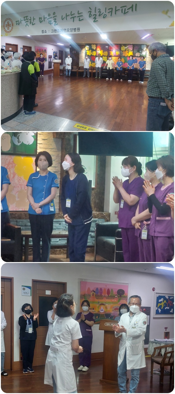 6월 월례회 가져. 페이지 정보 작성자 최고관리자 작성일25-06-04 10:13 조회998회 댓글0건 이전글 다음글 목록 본문 그랜드자연요양병원은 6월 2일 1층 로비에서 전직원들이 참석한 가운데 그랜드자연 월례회를 가졌다. 날씨가 더워짐에 있어 어르신들과 직원들의 건강 관리에 만전을 기하자고 강조하였으며, 이어서 신입직원들의 인사, 공로상 전달이 이어졌다. 댓글목록 등록된 댓글이 없습니다. 이전글 다음글 목록