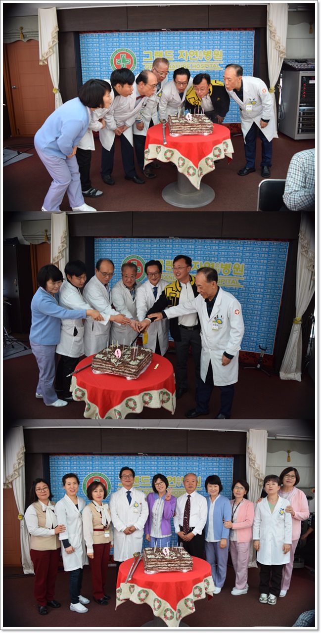 그랜드자연요양병원은 11월 18일 개원 9주년을 맞아 개원 기념 행사를 가졌다. 그랜드자연요양병원은 지난 2007년 11월 19일 개원하여 부산대학교 병원을 시작으로 동아대학교 병원, 신라대학교, 동명대학교 등 20여개의 단체와 협력 관계를 맺어 왔으며 부산일보, KNN 방송 등 여러차례 언론매체에 소개된 바 있고 부산일보 의료네트워크인 닥터큐 회원 병원으로써 2014년 보건복지부 인증의료기관으로서의 자격을 부여 받았다. 이 날 나용승 명예원장과 이재일 병원장은 기념 축사에서 지난 9년의 시간을 같이한 임직원들의 노고를 치하하고 어르신들을 위해 항상 움직이고 생각하는 자세와 마음을 갖는 하루가 되자고 당부하였다.