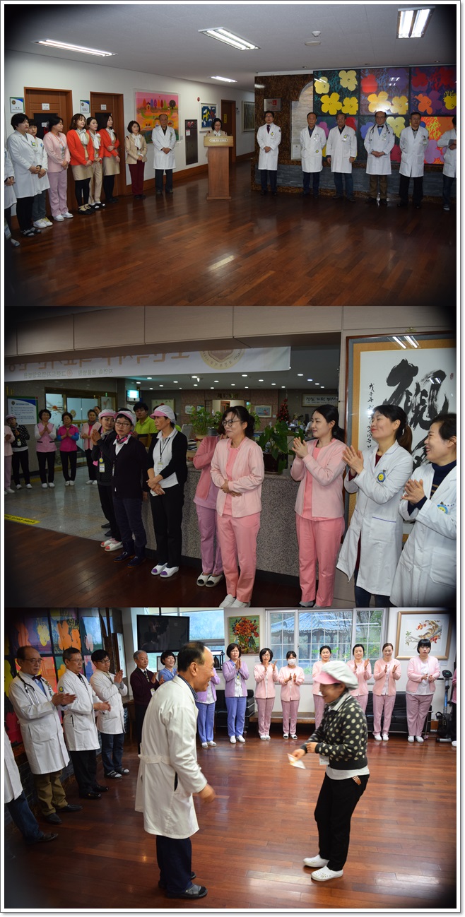 이재일 병원장의 2017년 정유년 닭띠의 해를 맞아 새로운 시작으로 박차를 가하자는 새해 첫 인사 말씀과 이어 정은희 간호과장의 새해 첫 말씀, 신입 직원들의 인사, 1월에 생일을 맞이한 직원들의 축하 시간이 이어졌다.