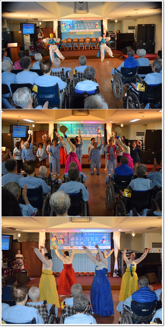 몸과 마음이 편찮으신 어르신들께 공연을 보여드리며 함께 즐거워 하는 것뿐만 아니라 어르신들과 우리나라 민속무용을 따라하기 쉽게 재구성하여 함께 춤추는 것이었다.