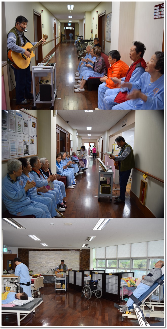 11월의 병동으로 찾아가는 작은 음악회 페이지 정보 작성자 최고관리자 작성일15-12-03 11:01 조회1,990회 댓글0건 이전글 다음글 목록 본문 그랜드자연요양병원에서는 거동이 힘든 어르신들을 위해 각 병동 및 재활센터로 찾아가서 여는 찾아가는 작은 음악회를 열고 있다. 댓글목록 등록된 댓글이 없습니다. 이전글 다음글 목록