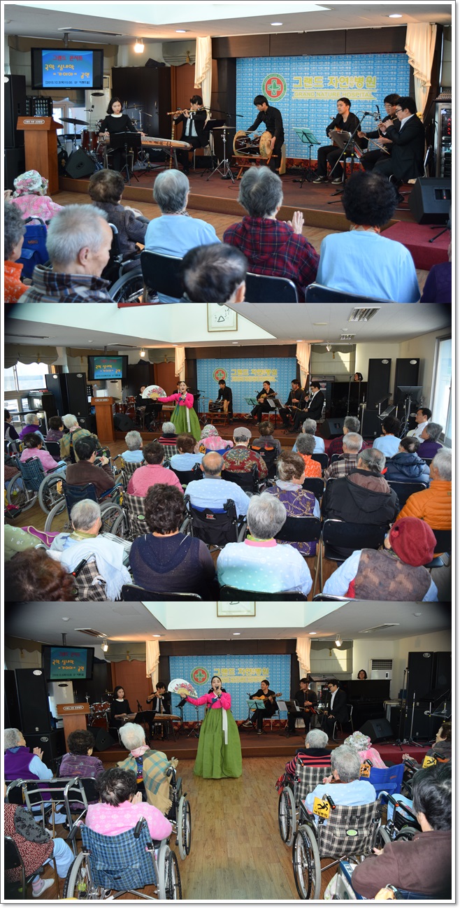 국악 실내악 - "가이아"공연 페이지 정보 작성자 최고관리자 작성일15-12-07 12:02 조회2,200회 댓글0건 이전글 다음글 목록 본문 지난 12월3일 그랜드자연요양병원은 국악 실내악 "가이아"의 초청공연으로 그랜드 콘서트를 열었다. 심청가, 춘향가를 비롯하여 추억의 가요메들리 등 평소 익숙한 곡들로 어르신들의 몸과 마음을 힐링할 수 있는 시간을 갖게 해주었다. 댓글목록 등록된 댓글이 없습니다. 이전글 다음글 목록