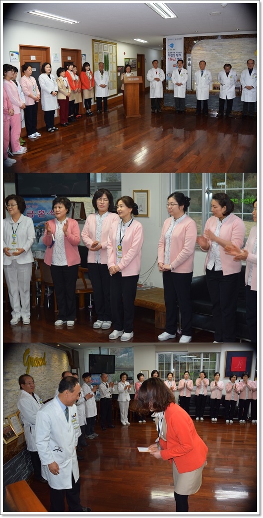 그랜드자연요양병원은 지난 3월 3일 1층 로비에서 전직원들이 참석한 가운데 그랜드자연 월례회를 가졌다. 이날 병원장은 환절기 어르신들 건강관리에 만전을 기하자고 강조 하였으며 이어서 신입직원들의 인사가 이어졌고 3월에 생일을 맞이한 직원들을 축하하며 작은 정성으로 마련된 선물이 전달되었다. 봄의 설레임으로 시작되는 3월을 준비하는 마음으로 "그랜드 그랜드 힘!"의 구호와 함께 3월 월례회를 마쳤다.