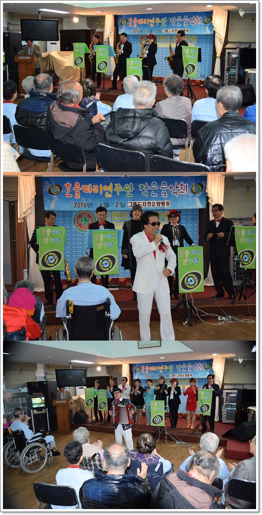 4월의 작은 음악회 - 한울타리 연주단 공연 페이지 정보 작성자 최고관리자 작성일15-04-09 11:23 조회2,305회 댓글0건 이전글 다음글 목록 본문 지난 4월 2일 그랜드자연요양병원을 찾은 한울타리 연주단은 가수 서용의 '안동역에서',' 내나이가 어때서'를 시작으로 가수 오례의 '당신뿐이야'등 흥겨운 옛가요를 비롯하여 색소폰의 합주로 어르신들과 함께 할 수 있는 흥겨운 시간을 마렸했다. 댓글목록 등록된 댓글이 없습니다. 이전글 다음글 목록