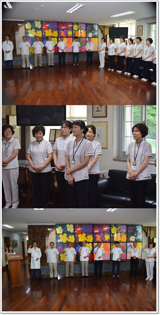 그랜드자연요양병원은 지난 6월 1일 1층 로비에서 전직원들이 참석한 가운데 그랜드자연 월례회를 가졌다. 이재일 병원장은 날씨가 더워짐에 있어 어르신들의 건강 관리에 만전을 기하자고 강조하였으며. 이어서 신입직원들의 인사가 이어졌고 6월에 생일을 맞이한 직원들을 축하하며 작은 정성으로 마련된 선물이 전달되었다.