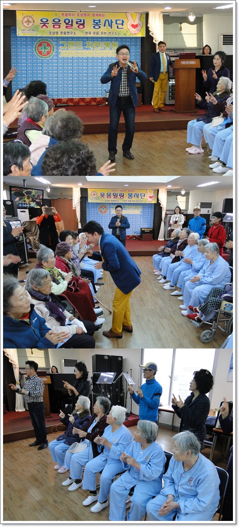 그랜드자연요양병원은 우리 어르신들이 보다 나은 병상생활을 통해 건강해지기 위한 문화 프로그램으로 웃음박사 조상영 교수를 모셔 즐거운 웃음치료를 하고 있다.