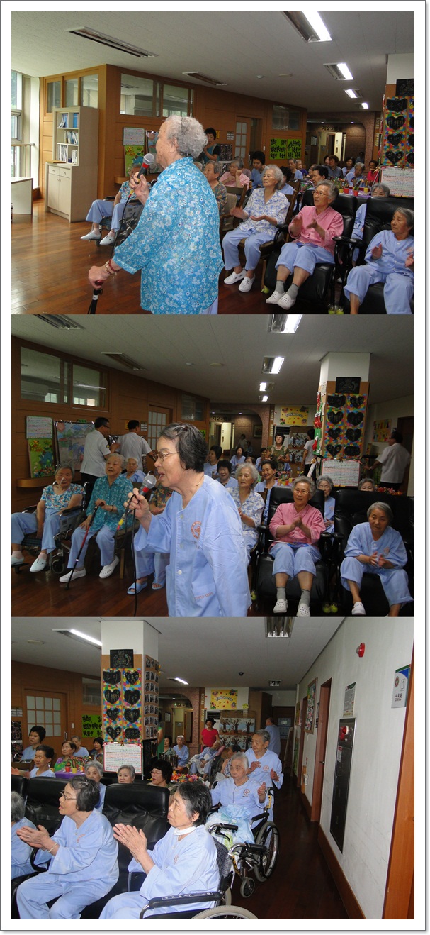 그랜드자연요양병원의 다양한 음악치료 프로그램중 어르신들이 선호하는 음악활동으로 노래부르기 시간에는 기억속에 잔존하고 있는 노래를 생각나게 하고 가사를 통해 문자의 기억을 되살려 언어 능력의 회복을 기대할 수 있다.
