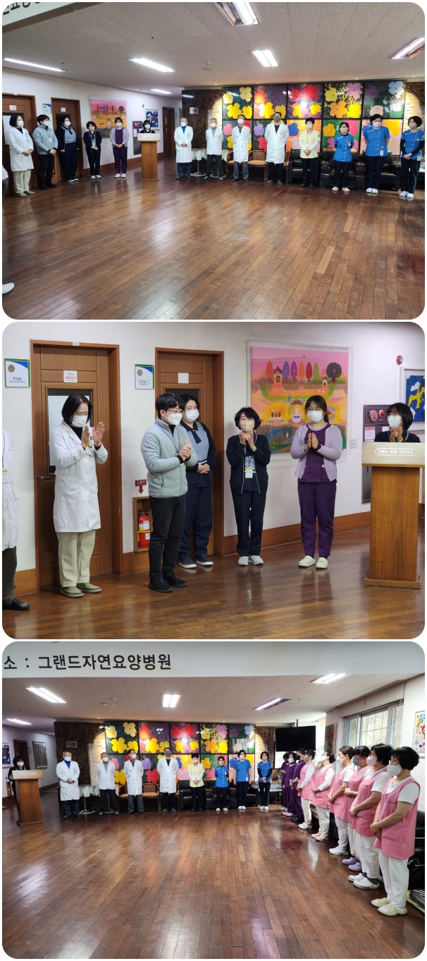 3월 월례회 가져. 페이지 정보 작성자 최고관리자 작성일25-03-12 14:05 조회1,015회 댓글0건 이전글 다음글 목록 본문 그랜드자연요양병원은 3월 5일 1층 로비에서 전 직원들이 참석한 가운데 그랜드자연 월례회를 가졌다. 신입 직원들의 인사가 이어졌고 봄의 설레임으로 시작되는 3월을 준비하는 마음으로 "그랜드 그랜드 힘!"의 구호와 함께 3월 월례회를 마쳤다. 댓글목록 등록된 댓글이 없습니다. 이전글 다음글 목록