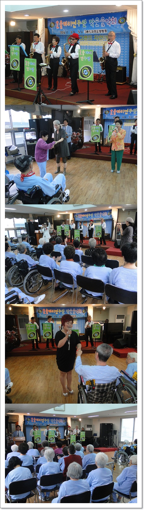 지난 6월 5일 한울타리 연주단의 공연이 그랜드자연요양병원 5층 이벤트홀에서 열렸다. 매월 한차례 문화 봉사 활동을 펼치고 있는 한울타리 연주단의 이날 공연은 가수 서용의 흥겨운 옛가요를 시작으로 가수 오래, 가수 임대윤의 메들리를 비롯하여 색소폰의 합주로 어르신들과 함께 할 수 있는 흥겨운 시간을 마렸했다.