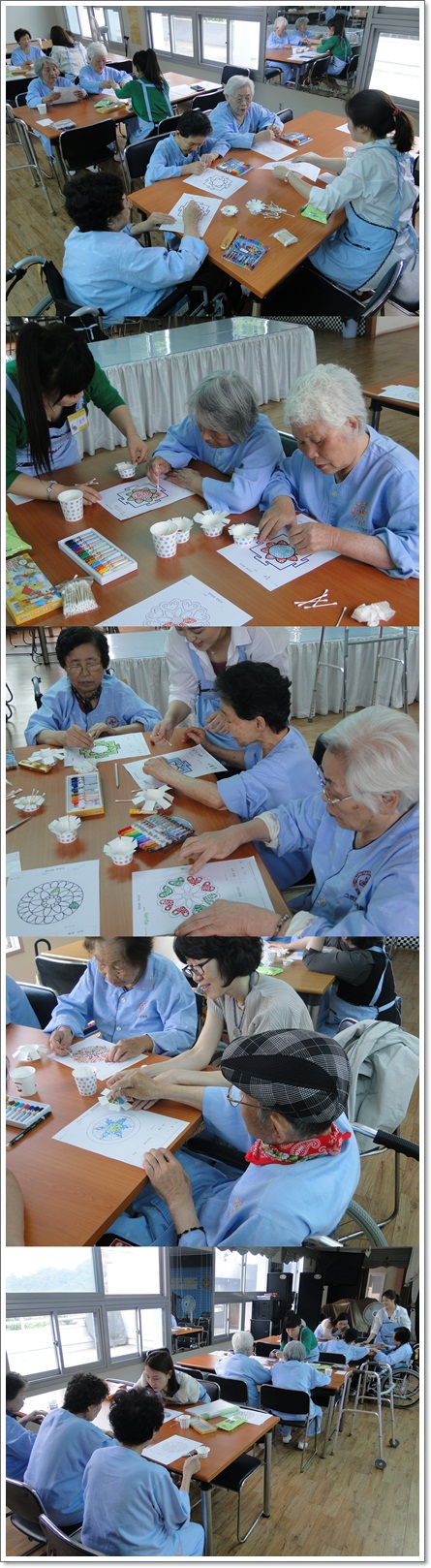 그랜드자연요양병원에서는 매주 미술치료를 하고 있다. 어르신들은 미술작품안에 많은 이야기들을 담는다. 미술의 기법을 이용한 작품들이지만 그 과정속에는 눈과 손의 힘을 기르는 활동과 공간 지각 능력을 갖게 하는 활동들이 포함되어 있다.