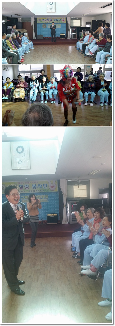 그랜드자연요양병원은 우리 어르신들이 보다 나은 병상생활을 통해 건강해지기 위한 문화 프로그램으로 웃음박사 조상영 교수를 모셔 즐거운 웃음치료를 하고 있다. 이날은 특히 보기드문 여자 각설이가 함께하는 무대로 어르신들이 더욱 많이 웃을수 있는 시간이 되었다.