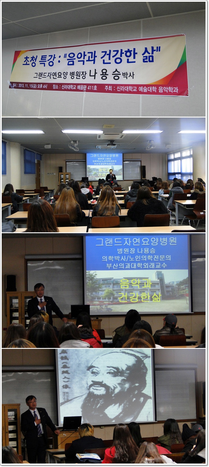 그랜드자연요양병원 나용승 병원장, 신라대학교 초청 강연회 가져. 페이지 정보 작성자 그랜드자연병원 작성일13-12-09 11:54 조회2,684회 댓글0건 이전글 다음글 목록 본문 그랜드자연요양병원 나용승 병원장은 지난 11월 15일 신라대학교 예음관에서 <음악과 건강한 삶>에 관한 초청 강연회를 가졌다. 댓글목록 등록된 댓글이 없습니다. 이전글 다음글 목록